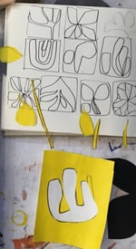 Gelliprinting onto fabric - using bold shapes and patterns inspired by Swedish designer Lotta Jansdotter and her stylised botanical designs, as seen in photos 1 and 2.